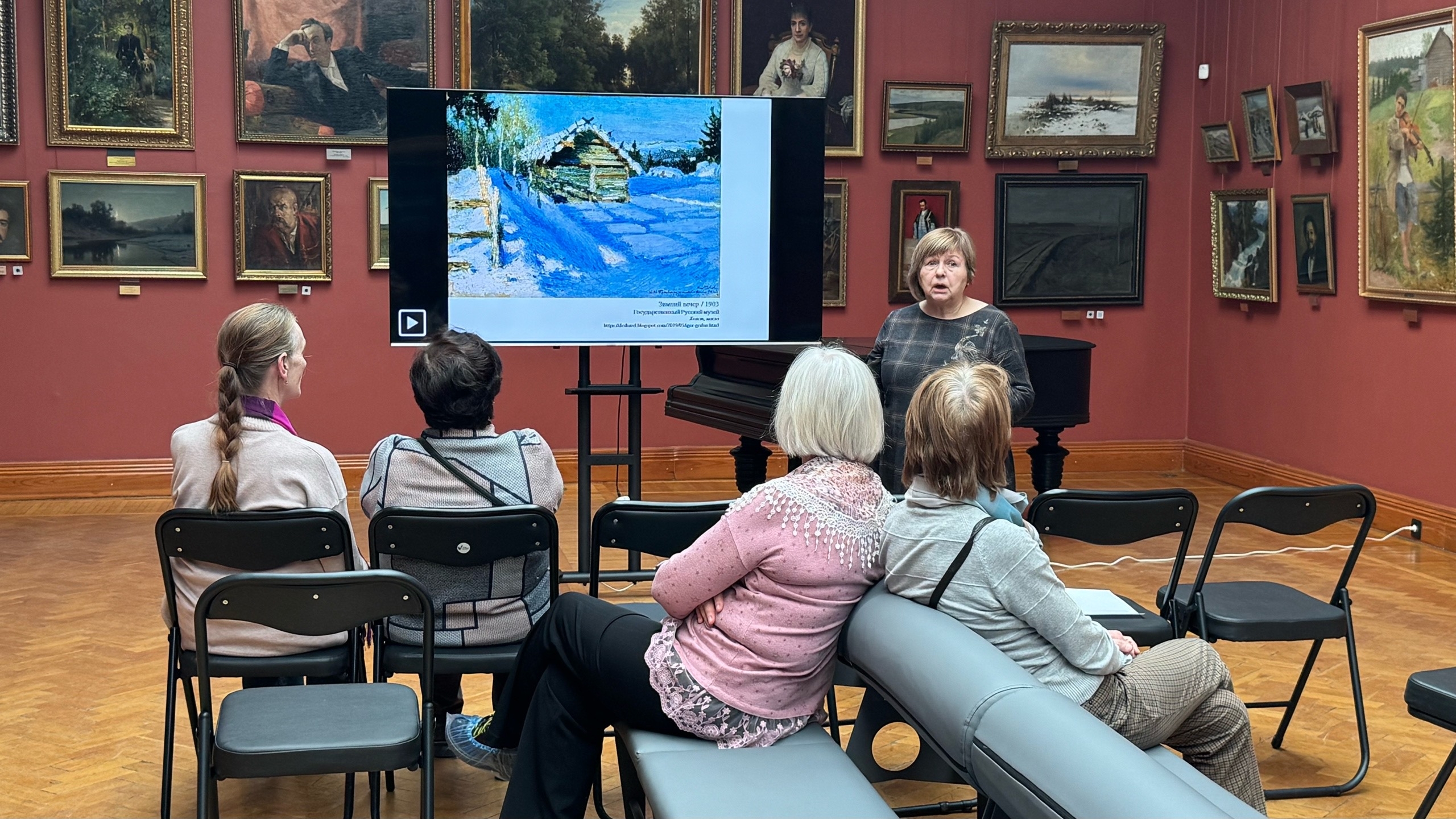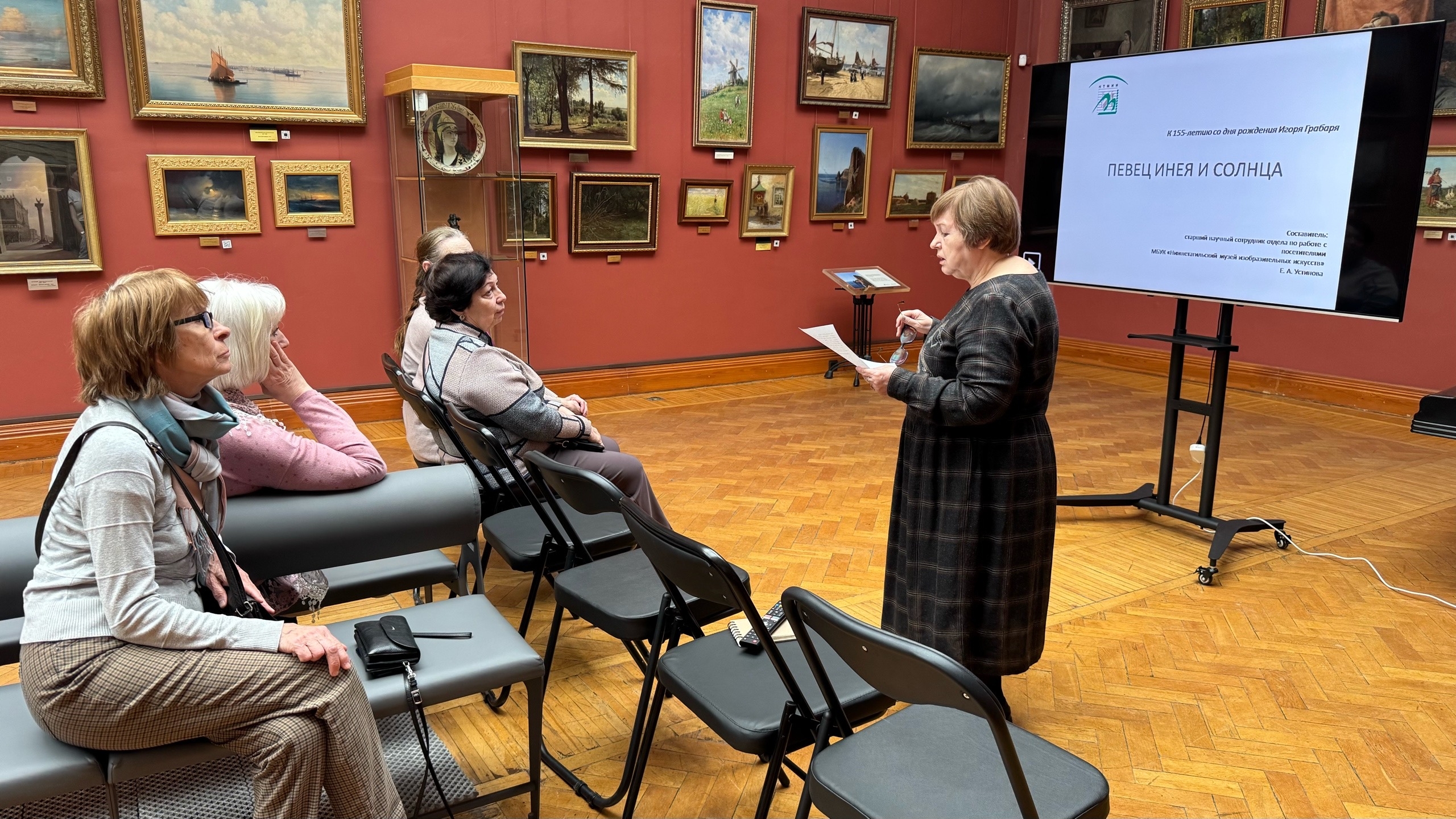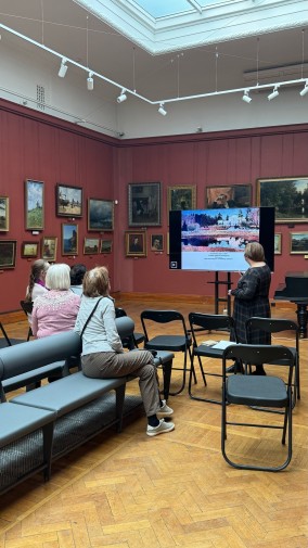 ости события познакомились с ключевыми этапами биографии и творческого пути Игоря Эммануиловича Грабаря. Старший научный сотрудник представил знаковые произведения разных жанров (пейзаж, портрет и натюрморт) из частной коллекции, Государственного Русского музея и Третьяковской галереи.
