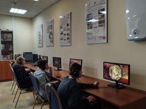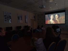 Участники клуба «Юных любителей искусства», учащиеся лицея №1, являются постоянными посетителями филиала долгие годы. Многие школьники уже несколько лет посещают Государственный Русский музей по абонементам как участники кружков при клубе «Юных любителей искусства». За это время ребята успели познакомиться с шедеврами коллекции, посетить все дворцы и сады Русского музея, побывать на временных выставках. В этот раз ребята посмотрели фильм о реставрации из медиатеки виртуального филиала «Неизвестный главный герой», посвященный реставрации портрета художника А. Матвеева, кисти И. Никитина (написанного в 18 веке). Учащиеся увидели, как в реставрационной мастерской при помощи стереомикроскопа научные сотрудники исследуют картину, в УФ-лучах рассматривают толщину пожелтевшего лака и поздние записи, как проводятся химико-биологические исследования, чтобы изучить состав и свойства материалов, из которых создана картина и многое другое. Ребята также имели возможность узнать подробнее о реставрации серии портретов «Смолянок» Д. Левицкого, об экспертном совете и специальном научно-реставрационном центре, который проводит такие исследования.