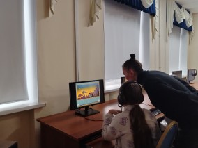 В конце занятия юные любители искусства провели время изучая медиатеку за индивидуальными компьютерами и игровыми программами медиатеки центра.