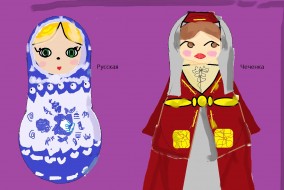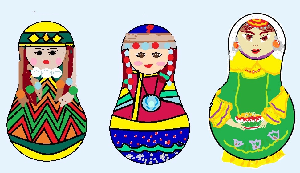 Ребята взяли за основу Куклу-матрешку, которая сегодня стала едва ли не национальным символом России. Между тем эта игрушка возникла лишь в конце XIX века трудами профессионального художника С. В. Малютина, использовавшего занятную вместительную форму одной из японских кукол и придумавшего роспись, условно передающую облик русской красавицы в народном костюме. С тех пор матрешки делают во многих местностях.