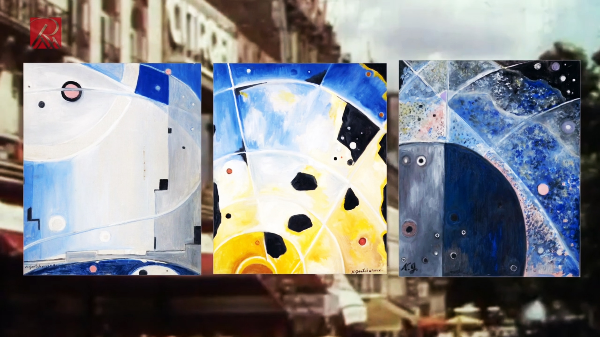 В 1958 году 77-летняя Гончарова выставила серию абстрактных картин, посвященных космосу. По мнению некоторых исследователей, эти работы были реакцией художника на запуск в СССР первого спутника. Однако воздействие космизма – важного течения русской религиозно-философской мысли начала XX века – можно проследить и в других более ранних произведениях Гончаровой, а также в ее записях. Еще в 1913 году появилось абстрактное произведение художника «Пустота», которое можно сопоставить с мыслями ученого В.И. Вернадского о вакууме. Философия Н.Ф. Федорова и идеи космизма всего скорее были известны чете Гончаровой-Ларионова еще в России, до отъезда за границу.