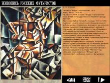 Программа была подготовлена к выставке русского футуризма, содержит редкие фотографические материалы и электронный альбом произведений ведущих представителей футуризма в России. В программе представлены 200 произведений живописи, графики, декоративно-прикладного искусства и скульптуры с подробными аннотациями.