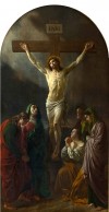 Изображены три Марии — Богоматерь, Мария Клеопова и Мария Магдалина, Иоанн Богослов и Иосиф Аримафейский, скорбящие около распятого Христа (Ин. 19: 25–26). В. А. Кадочникова // Великий Карл. К 225-летию со дня рождения К. П. Брюллова. СПб, 2024. С. 340.