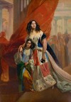 Многие восторженные страницы посвящены описанию другого парадного изображения кисти К. П. Брюллова — «Портрета графини Ю. П. Самойловой, удаляющейся с бала с приемной дочерью Амацилией Пачини» — признанного шедевра портретной живописи европейского XIX века, подтверждавшего неоднократно этот статус выставочным сопоставлением с произведениями других национальных школ*. Образ, запечатленный на холсте, отличается взрывной энергией, магической, не внешней привлекательностью, невероятной целостностью и внутренней завершенностью, несмотря на то что даже не очень искушенный глаз заметит отдельные фрагменты, оставленные лишь в подмалевке, иные детали только «пропачканные» цветом, просвечивающий во многих местах заднего плана карандашный рисунок, а в ряде случаев удивительную экспрессивную мешанину красочных паст, весьма разнообразящую фактуру картины, придающую всему произведению особую, ни с чем не сравнимую выразительность. Модель, без сомнения, позировала художнику. Между тем задний план и фон портрета, вероятнее всего, представляют собой условную декорацию. Картина имеет и иносказательный смысл, обозначенный самим Брюлловым как изображение «маскарада жизни»**. Сбросившая маску и удаляющаяся с бала Самойлова как бы находит в этой мишурно-житейской феерии возможности искреннего и даже несколько высокомерного самоутверждения. В этом демонстративном противопоставлении реальности и художественного бытия, всегда более яркого и впечатляющего — несомненный романтический смысл портретной концепции Брюллова. <...>