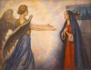 Благовещение, одно из важнейших событий новозаветной истории, описано в Евангелии от Луки. В галилейский город Назарет явился ангел Гавриил, посланный Богом к деве Марии, которая жила в доме своего мнимого мужа Иосифа Обручника. Войдя к ней, Гавриил произнес: «Радуйся, Благодатная! Господь с Тобою; благословенна Ты между женами». Марии, смущенной таким приветствием, Ангел сообщил, что у нее родится сын Иисус, который «будет велик и наречется Сыном Всевышнего», и что младенец будет зачат от Духа Святого без нарушения девственности матери. Покорная воле Бога, Мария ответила: «Се, Раба Господня; да будет Мне по слову твоему». Именно этот момент согласия и явился моментом чудесного зачатия, ибо послушное «да будет» искупило грехопадение человечества и, низводя Бога в мир, открыло путь к спасению людей.