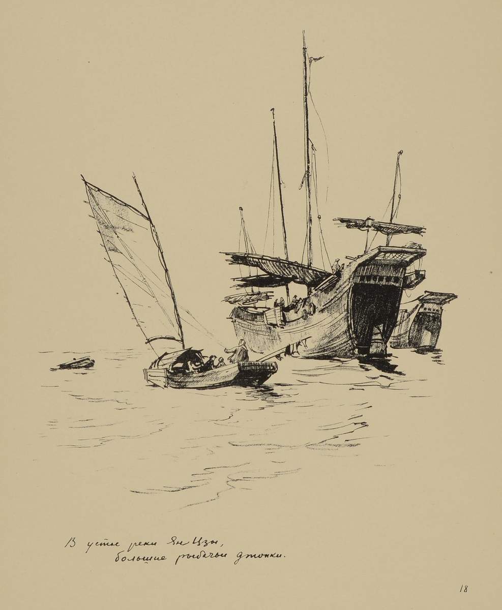 Лист № 18. В устье реки Янцзы, большие рыбачьи джонки