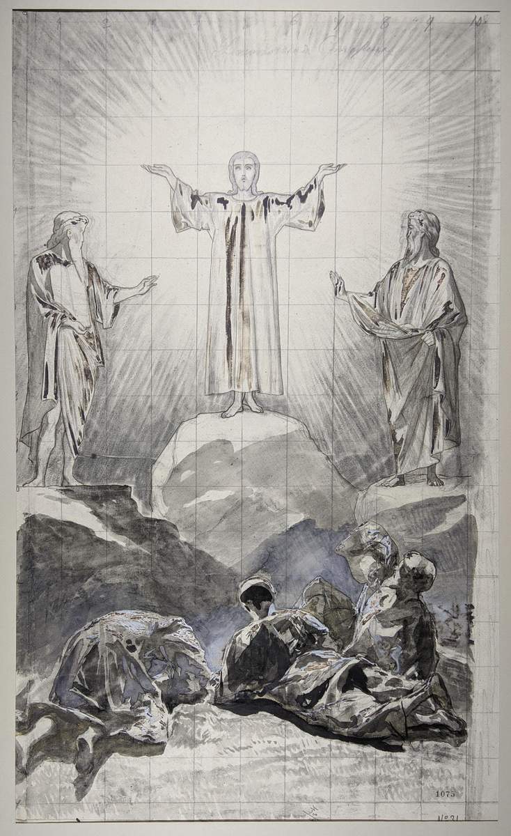 „По прошествии дней шести, взял Иисус Петра, Иакова и Иоанна, брата его, и возвел их на гору высокую одних, / И преобразился пред ними: и просияло лице Его как солнце, одежды же Его сделались белыми как свет. И вот, явился им Моисей и Илия, с Ним беседующие. При сем Петр сказал Иисусу: Господи! хорошо нам здесь быть; если хочешь, сделаем здесь три кущи: Тебе одну, и Моисею одну, и одну Илии. Когда он еще говорил, се, облако светлое осенило их; и се, глас из облака глаголющий: Сей есть Сын Мой Возлюбленный, в Котором Мое благоволение; Его слушайте“. Мф. 17, 1–5; Мк. 9, 2–9; Лк. 9, 28–36. Иисус Христос. СПб, 2000. С. 181.