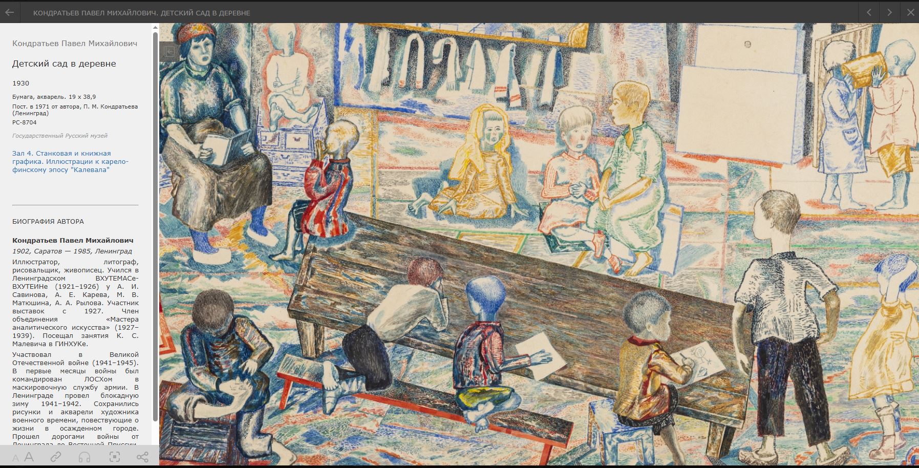 Показать полный текстВ виртуальном туре можно узнать о наиболее ярких акциях, которые были проведены этим объединением под руководством своего учителя. Отдельные залы в туре посвящены выставке «Школа Филонова» в Доме печати в 1927 году и оформлению спектакля по пьесе Н.В.Гоголя «Ревизор», который был поставлен на сцене этого учреждения весной того же года.